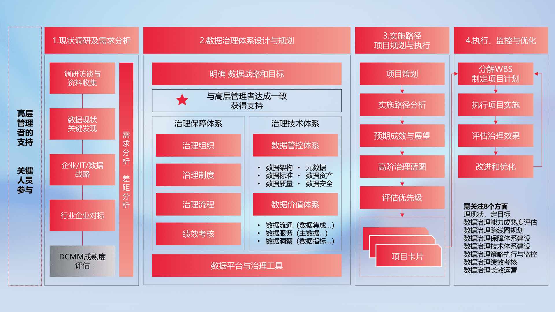 制定并执行统一的数据标准,,,,规范数据定义和格式,,消除冗余和不一致性,,实现跨部门和跨系统的数据一致性,,为企业提供标准化的数据基础。。